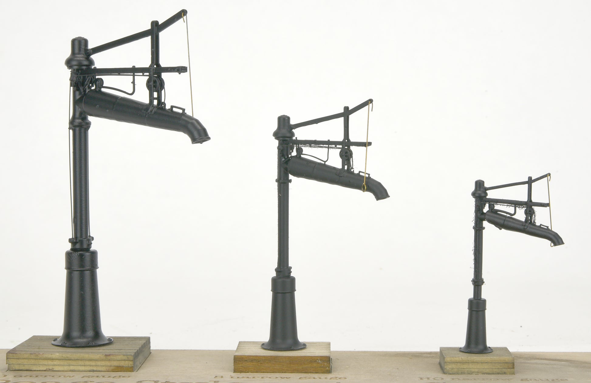 This kit is a Poage water column manufactured by the American Valve and Meter Co. in the early part of the last century... and is widley based on the East Broad Top and D&RG prototypes as both railroads used this type of water column. It is a 3D printed model, all you need to do is add the rigging, the pull handle and the base. Included is a wood base to help set it up. The foundation in this case is wood but you could easily incorporate a concrete foundation to fit your railroad. I will note that these columns could be ordered in any height from the manufacturer and our range is intended for narrow gauge so they are a bit short for most standard gauge operations. O, S and HO shown in the smaller photo....