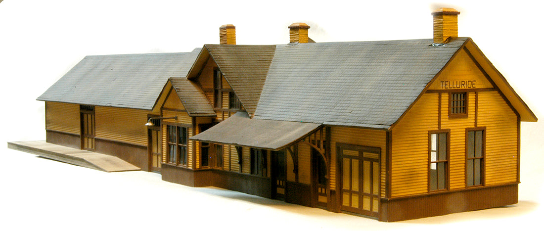 Scale model kit of the Telluride Depot on the Rio Grande Southern Railroad. All laser cut MDF, Basswood and paper shingles with white metal chimneys. Note this kit is made to order and can take up to 4 weeks to get one cut.....