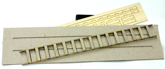 Precision laser cut basswood, 6 per kit. Measures 9" tall, 15/16" wide, includes assembly fixture.