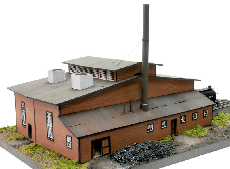 The Kit is composed of laser cut parts featuring peel and stic doors and windows. The kit includes a pit for each stall and fully integrated floor. Easy assembly makes a great kit and a great addition to your railroad! HO footprint is 11 1/2" deep, 6 1/2" across the front and 8" across the back. The track length inside the building is 10 1/8" and is designed for HO standard gauge locos. It is not designed for expansion to include more stalls. I am considering this kit for N scale, let me know if you are interested. Thanks!! I am also planning on several other structures from the Port Costa facility, more as I get closer to getting them done... Thanks to Athearn for the loan of the two pre-production MT4 locos. The prototype never serviced MT4's as the original turntable was only 75ft and the MT4's are a bit longer than that....but they look really nice sitting there!....